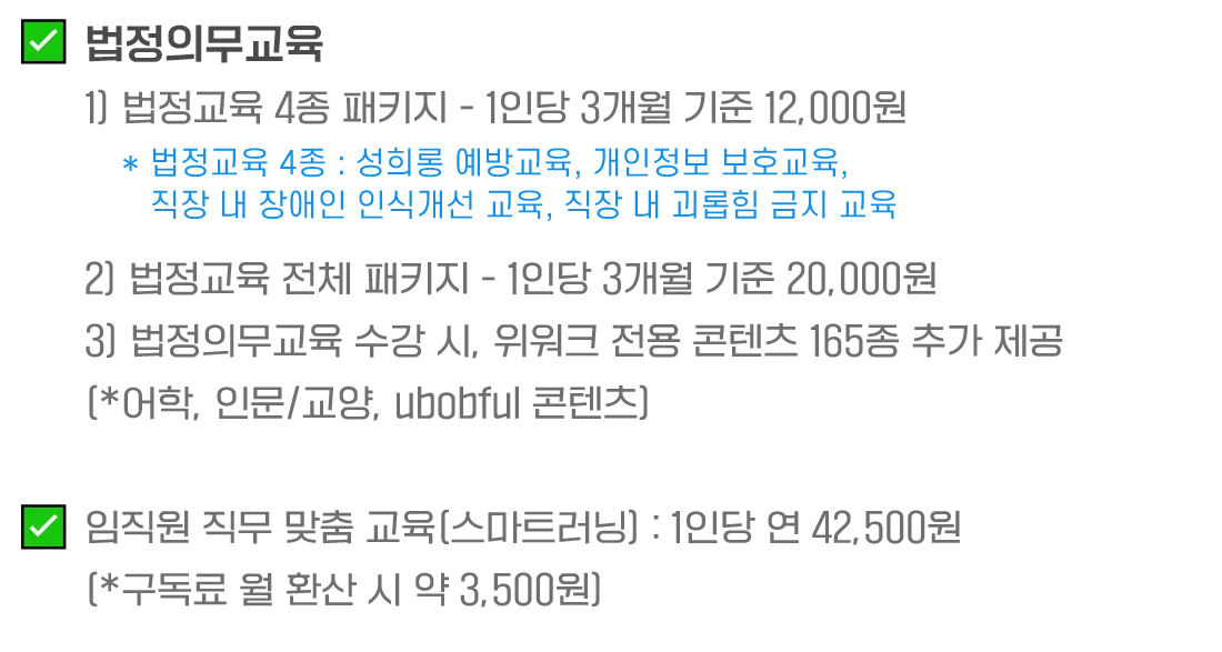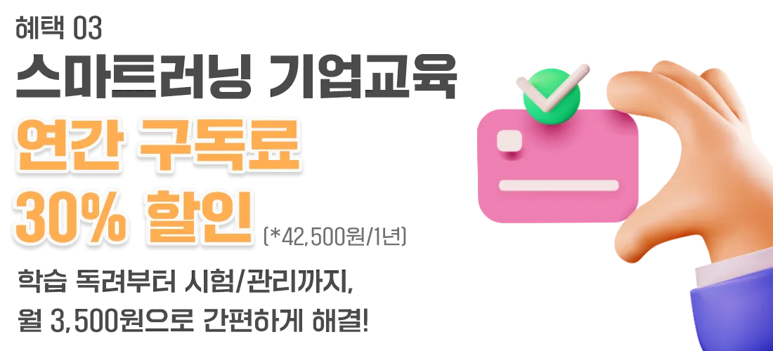상품별 최소 등록 기간은 법정의무교육 3개월, 스마트러닝 1년 기준입니다.