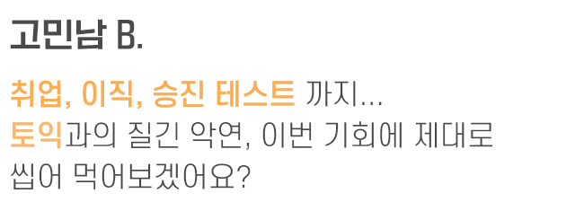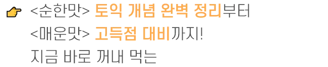 12개 과정. 500점 토익 입문부터 990+만점 대비까지 할 수 있는 토익 RC·LC 패키지. 토익의 기본기부터, 고득점을 위한 중고급 실전 문제풀이까지 목표점수 달성을 위한 단계별 학습을 제공합니다.